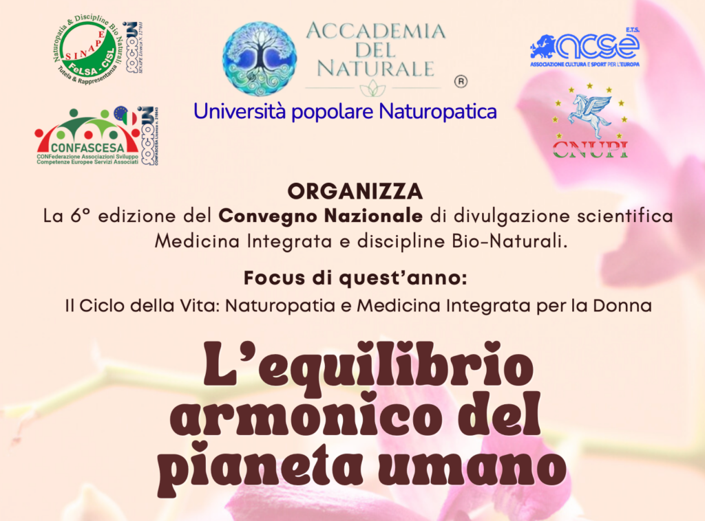 La sempre maggior consapevolezza sulle tematiche volte alle svariate forme di prevenzione in ambito salutistico, è ancora una volta il focus del 6° Convegno Nazionale di Medicina Naturopatica Funzionale, organizzato da Università Popolare Accademia del Naturale della Dr.ssa Silvia Giovetti e dal Dr. Giuseppe Gianfrancesco PhD come responsabile scientifico.