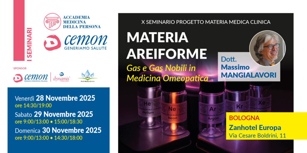 BOLOGNA – MATERIA AREIFORME. GAS E GAS NOBILI IN MEDICINA OMEOPATICA – DOTT. MASSIMO MANGIALAVORI