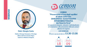 WEBINAR – Dott. Giorgio Carta– Corso “Prevenzione e cura degli squilibri di salute estivi con Omeopatia, Oligoterapia, Fitoembrioterapia, Nutraceutica”