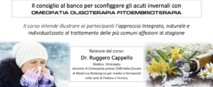 Giornata formativa rivolta ai clienti GUACCI Mercoledì 11 Dicembre 2019 Dalle ore: 13,30 alle 15,45 presso la sala convegni “Giovanni Guacci” al CIS di NOLA, Isola 8 n. 8090, si terrà un evento formativo dal titolo : Il consiglio al banco per sconfiggere gli acuti invernali con OMEOPATIA OLIGOTERAPIA FITOEMBRIOTERAPIA Il corso intende illustrare ai partecipanti l’approccio Integrato, naturale e individualizzato al trattamento delle più comuni affezioni di stagione RELATORE: RUGGERO CAPPELLO Medico Omeopata, docente di Omeopatia presso SMB Italia…