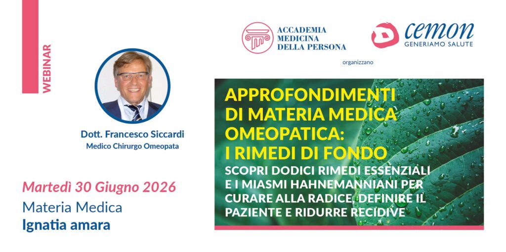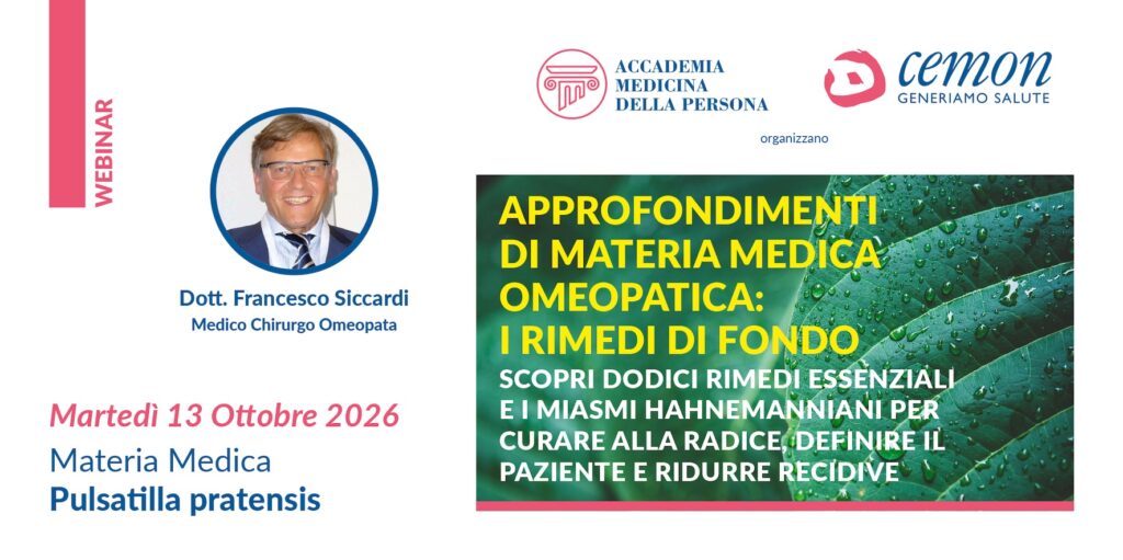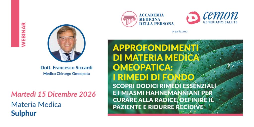 WEBINAR – APPROFONDIMENTI DI MATERIA MEDICA OMEOPATICA – I RIMEDI DI FONDO – DOTT. FRANCESCO SICCARDI