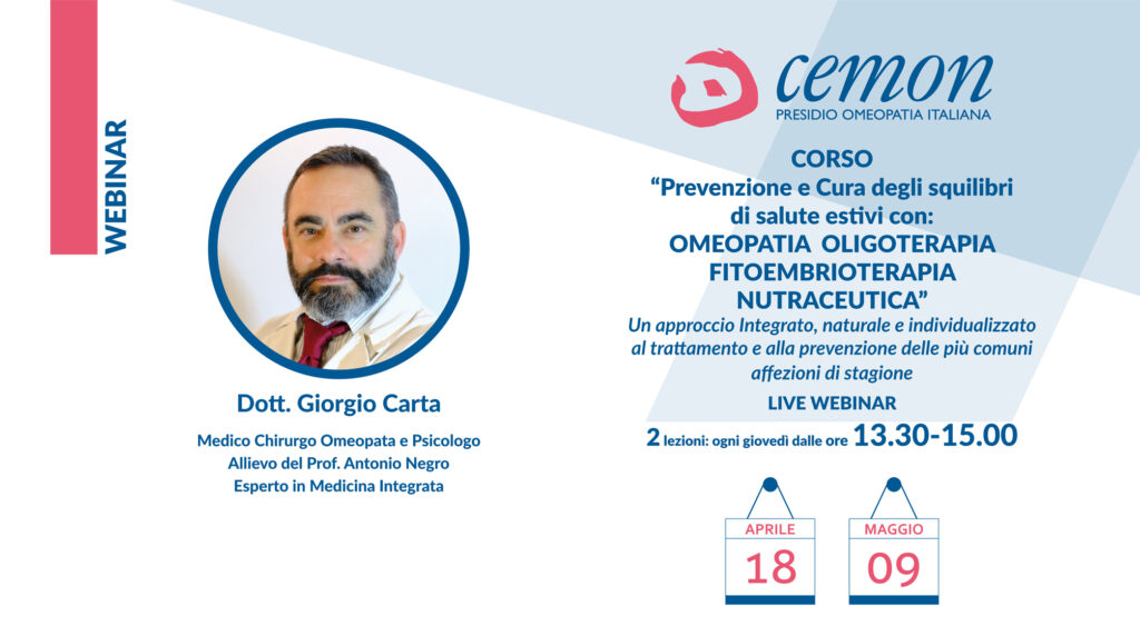Questi webinar formativi sulla medicina omeopatica nascono dall’esigenza di fornire quelle nozioni atte a comprendere non solo la sintomatologia fisica…